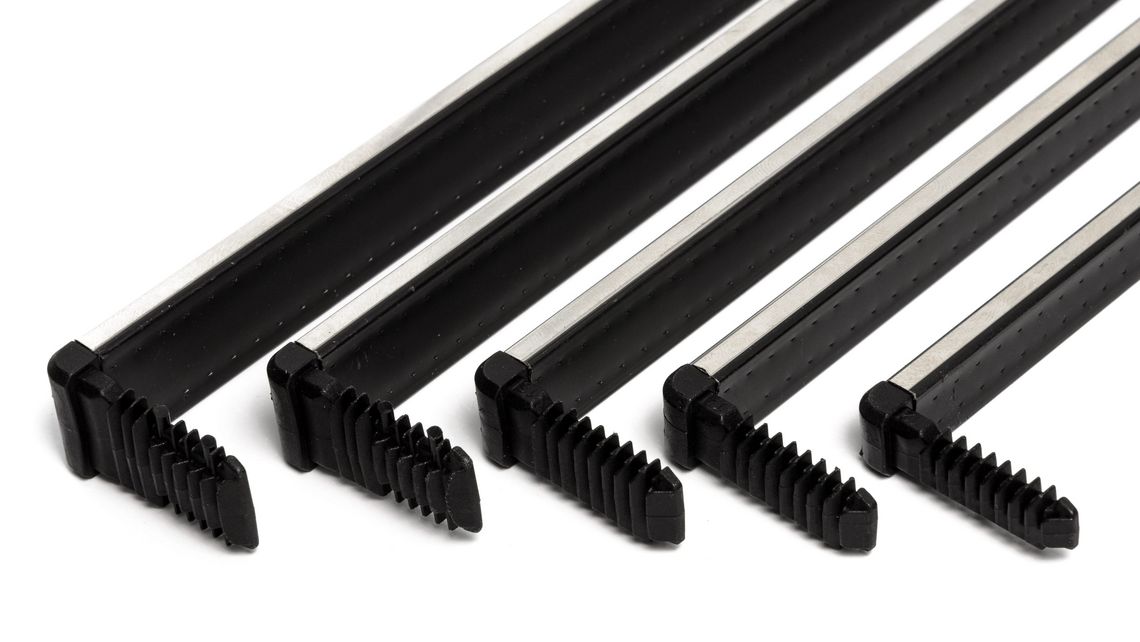 Thanks to their geometry, which is specially adapted to the respective spacer, and various spring assemblies, our linear connectors ensure an excellent form fit and thus high stability and a permanent hold without deformation of the spacer geometry – even with larger spacer frames. Low insertion forces enable easy, injury-free handling.